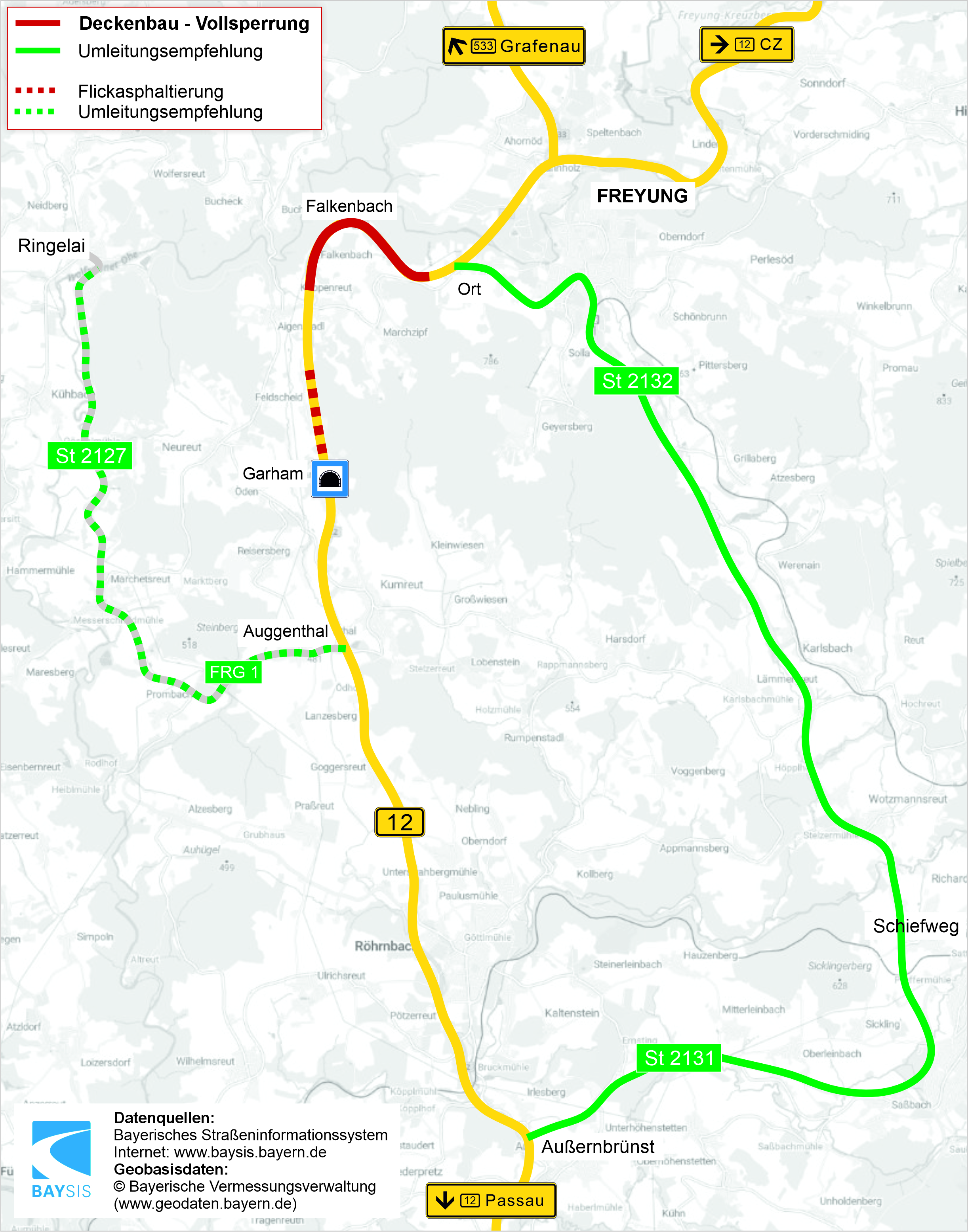 Vollsperrung zwischen Freyung, Ort und Aigenstadl