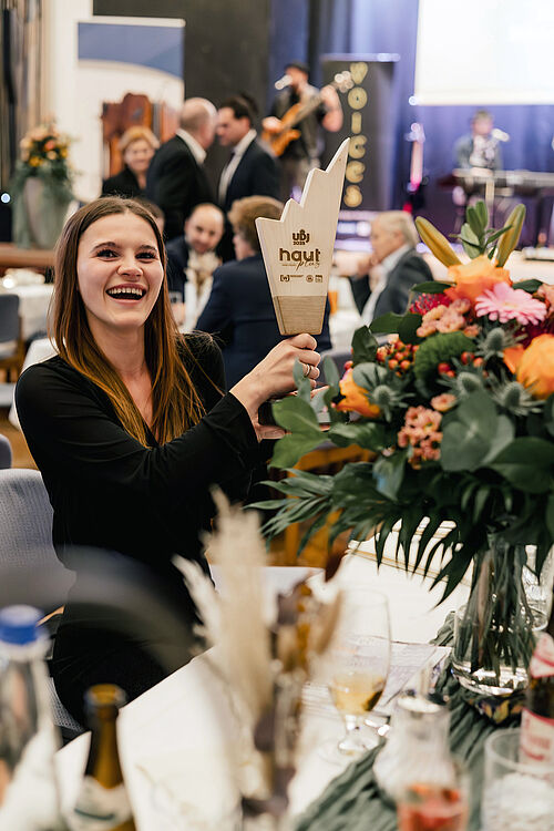 Eine sichtlich gerührte Gewinnerin, Theresa Friedrich, sagte in ihrer kurzen Dankesrede: „Wir wollten zeigen, wie wir arbeiten und wofür wir stehen. Dass unser Weg heute ausgezeichnet wird, macht uns sehr stolz.“