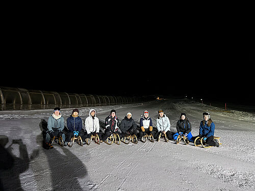 „Mit dem Projekt Exzellenter Winter möchten wir angehenden Medizinerinnen und Medizinern zeigen, wie spannend und vielseitig die ärztliche Tätigkeit im ländlichen Raum sein kann. Gleichzeitig wollen wir ihnen unsere Region als attraktiven Lebens- und Arbeitsort näherbringen“, betonte Regionalmanager Stefan Schuster zur Begrüßung der Studierenden. Ein besonderes Highlight des Abends war das vom Regionalmanagement organisierte Nachtrodeln am Almberg. Ausgerüstet mit Schlitten ging es am Abend auf die – dank der Unterstützung des Teams des Wintersportzentrums – beleuchtete Strecke. Für viele der Studierenden war dies ein ganz neues Wintererlebnis. Im Anschluss ließ die Gruppe den Abend bei einem gemütlichen Hüttenabend ausklingen. Bei regionalen Schmankerln und guten Gesprächen nutzten die angehenden Medizinerinnen und Mediziner die Gelegenheit, sich untereinander sowie mit den Organisatoren auszutauschen und erste Kontakte zu knüpfen.