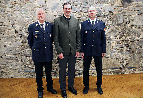 Im Anschluss daran erfolgte die Amtseinführung der neuen Kreisbrandinspektion. Landrat Sebastian Gruber überreichte allen neu ernannten Führungskräften ihre Ernennungsurkunden sowie einen Heiligen Christophorus als symbolisches Schutzzeichen für die vielen Fahrten der neuen Verantwortungsträger. Zu den neu ernannten Kreisbrandinspektoren gehören Harald Gibis, Michael Feuchter und Armin Garhammer. Als neue Kreisbrandmeister wurden Thomas Mayer, Raphael Nigl, Michael Hansbauer, Christian Kilger, Sebastian Tauber, Alexander Weber, Roland Duschl, Matthias Krenn, Alexander Binder, Markus Lösslein, Michael Vater, Josef Füller und Florian Schremmer in ihren Funktionen bestätigt bzw. neu berufen.