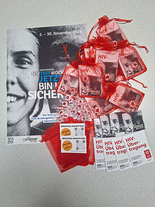 Zusätzlich steht im Eingangsbereich des Gesundheitszentrums Waldkirchen ein Infostand zum Thema HIV bereit. Dort liegen Broschüren, Flyer, Plakate und kleine Give-aways zur Mitnahme aus. Zudem verteilt das Sachgebiet Gesundheitswesen für die Schülerinnen und Schüler der Berufsschulen Waldkirchen und Grafenau kleine HIV-Info-Säckchen.